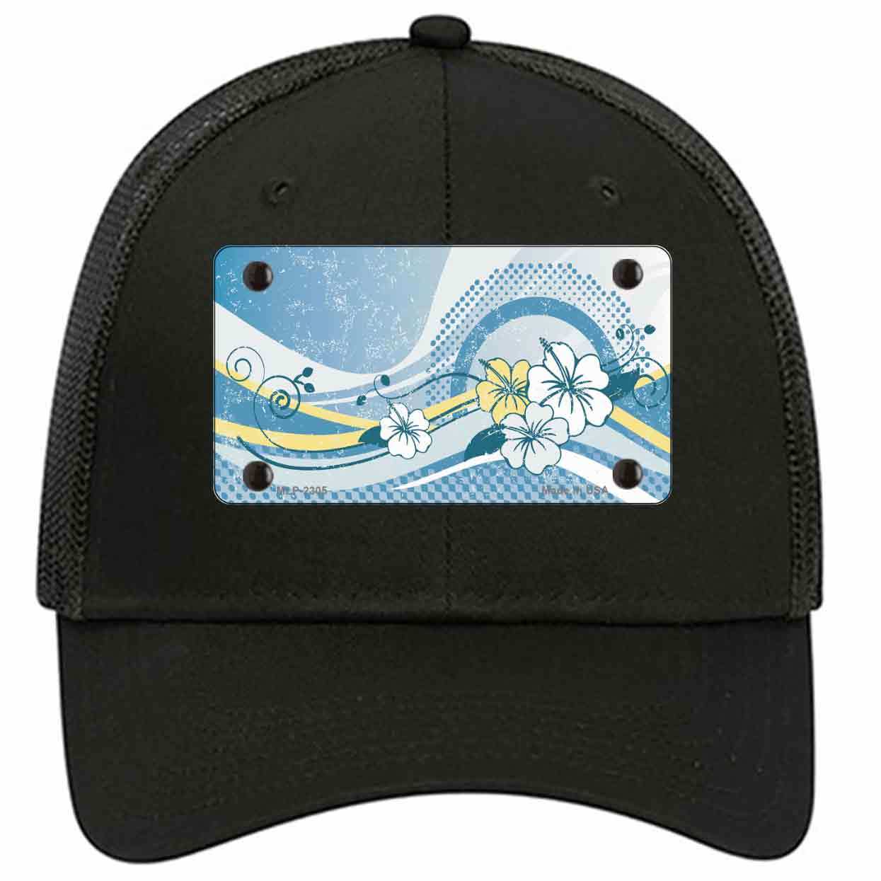 Blue Hawaii Hibiscus Novelty Black Mesh License Plate Hat