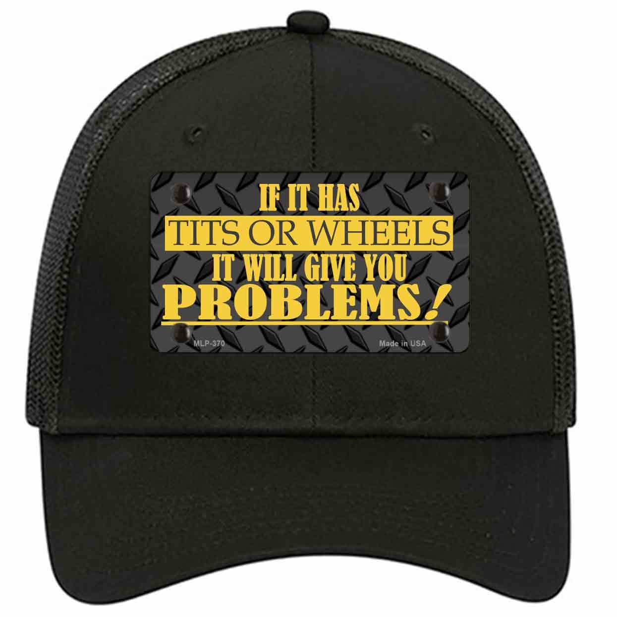 Tits Or Wheels Novelty Black Mesh License Plate Hat