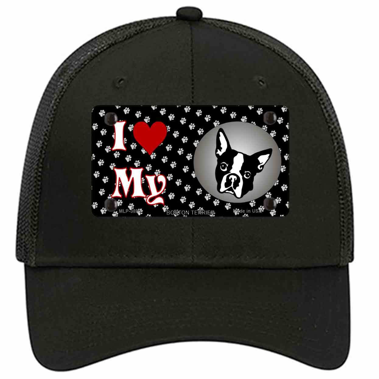 I Love My Boston Terrier Novelty Black Mesh License Plate Hat
