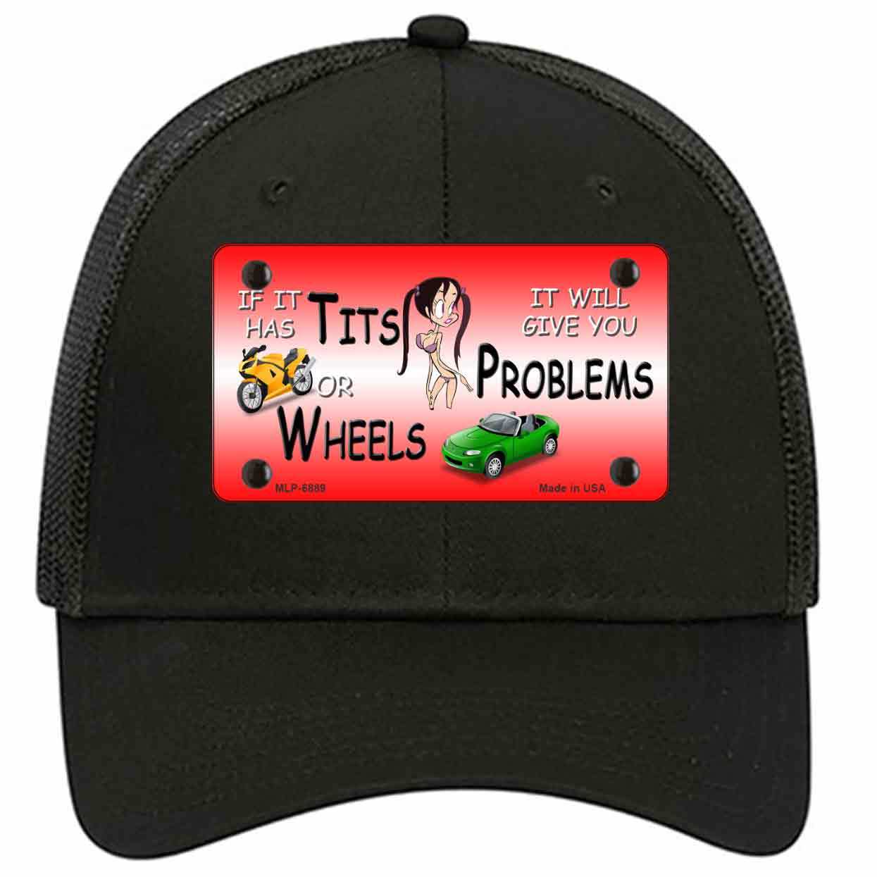 Tits Or Wheels Red Novelty Black Mesh License Plate Hat