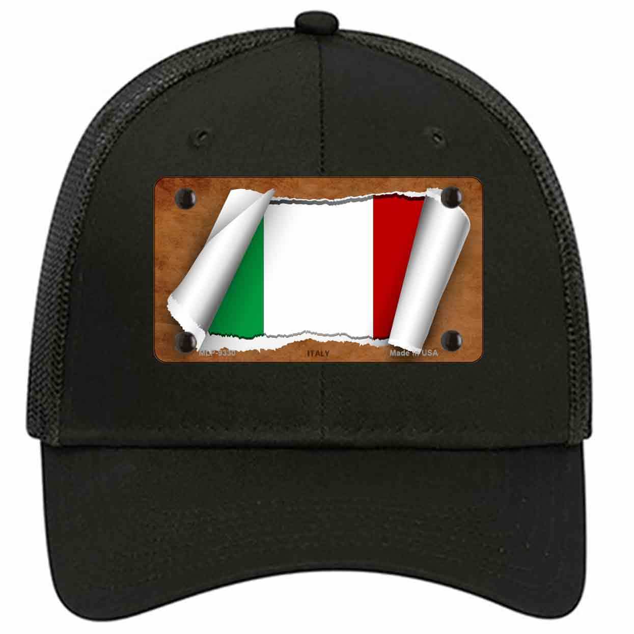 Italy Flag Scroll Novelty Black Mesh License Plate Hat
