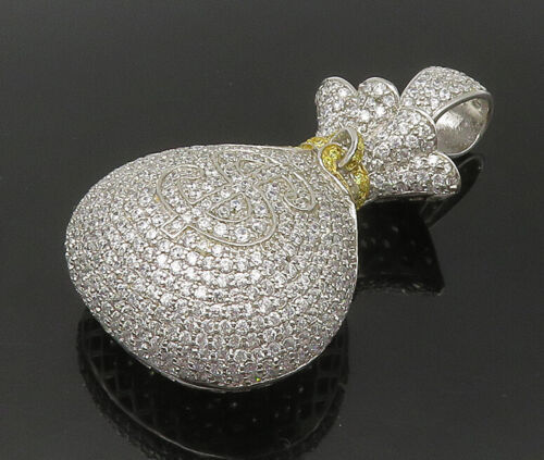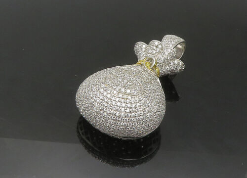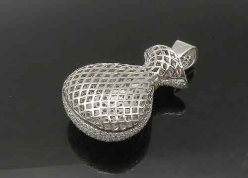 925 Silver - Vintage Shiny Cubic Zirconia Encrusted Money Bag Pendant - PT18347