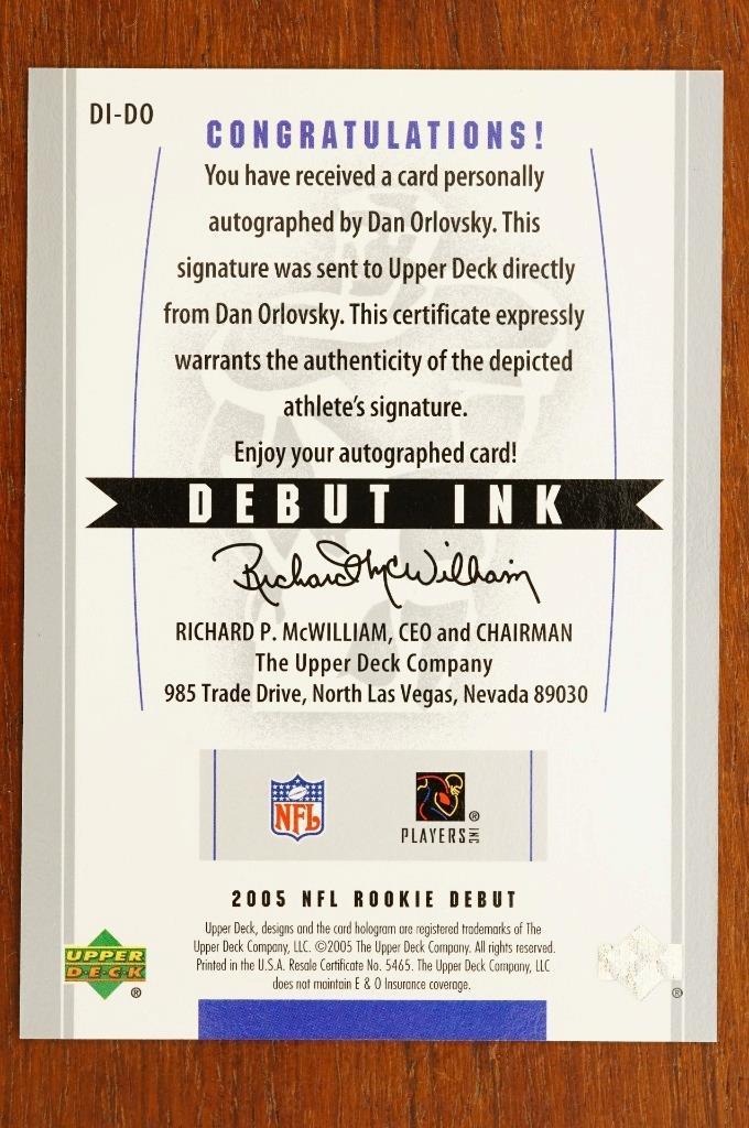 2005 Upper Deck Rookie Debut Ink Lions Football Card DI-DO Dan Orlovsky Auto