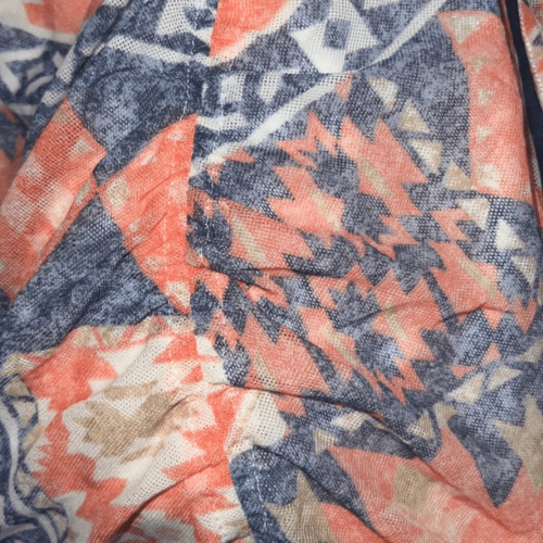 Beautiful Southwestern Aztec print fabric is a semi sheer mesh over a lining