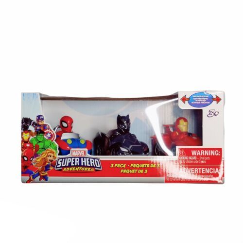 Marvel Super Hero Adventures 3 Pack Race Car Spiderman Black Panther Iron Man