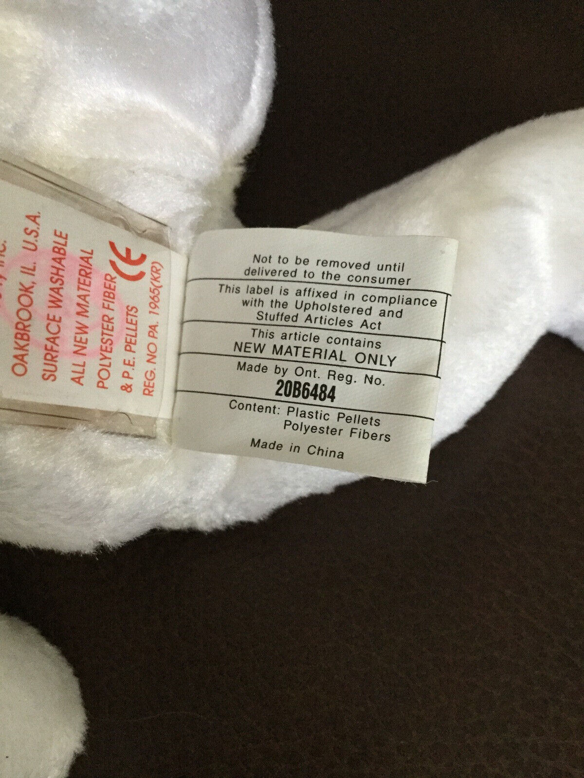 These bears feature two tush tags—typically one U.S. and one Canadian—written in English and French, which was a rare production quirk.