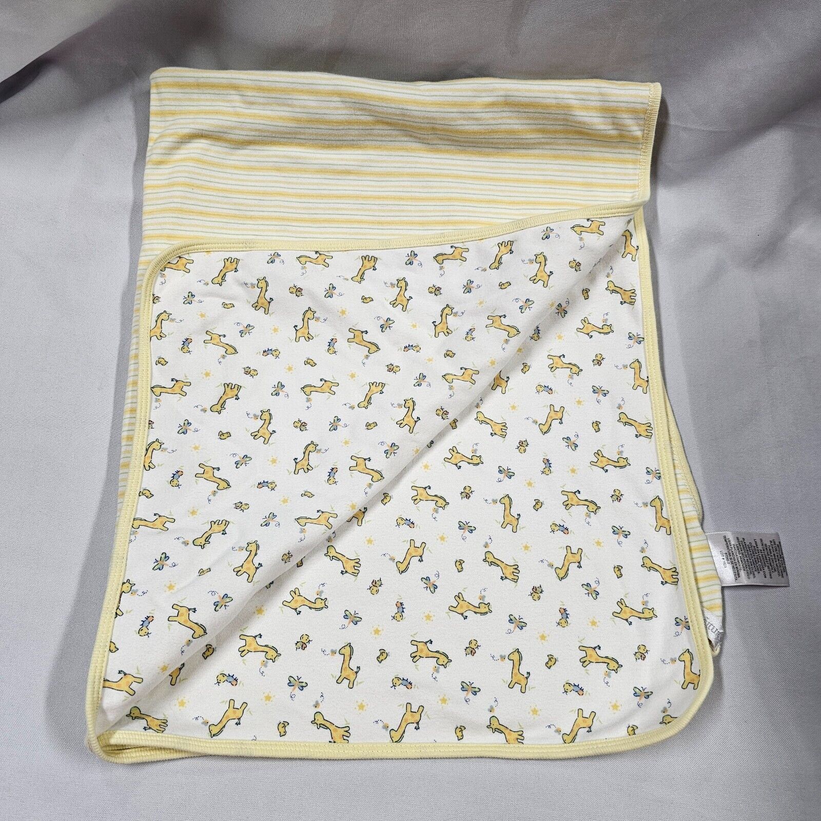 Bright Future 2-Ply Cotton Baby Blanket Reversible Yellow Stripe Giraffe Bugs