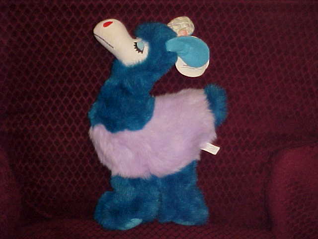 Hello everyone, Now at bottom of each of our item page is our word rating plush chart. Please check it out and read full item description before using the buy it now price. Ok here's extremely rare Llama Plush Toy From Disney's (it's A Small World), which is in excellent condition for it's vintage age. Llama is blue and lavender plush, heavy felt eyes and nostels, black stitch mouth, printed flower design on ears, hang tag attach to left ear and measures 16 inches tall. Tush body seam tag reads, The Walt Disney Company. Please see picture's. Winner bidder pays by Zone and Zip Code for priority mail shipping (up to 2 lbs) with handling of (1.50 h-fee), plus required delivery confirmation US only. Sorry we do Not Ship to Canada or Internationally. Please only bid if you have a united states street address to ship to. I'm Sorry but I have to Use Immediate payment by Paypal when buyer uses Buy It Now, E-Checks from Paypal are held 3-5 business days until it clears before item is ship. Since we are limited on our picture space, pic will be deleted after the end of auction, so if you would like to see pic after the auction, please print out picture before the auction ends. We due not do accept returns, so Please read full item description, all sales are final and are sold as worded in item description, as this is an sale. All items are offer as is condition. I ship most of the time following day after payment. Please take a moment and check out our other great Disney plush and character toys which are listed sale this week. New Rating Plush Chart. NEW: Comes from a factory or department store and has not played with. MINT Or LIKE-NEW: Looks new but might still been played with but shows no wear on the Plush itself but still might have a flaw (like a odor, etc., and might not been wash even though we strive very hard to make all our plush smell free but can not guaranteed them) EX. COND: Some minor play wear and might have some minor flaws which would be in the item description. VERY GOOD: Has been played with and has flaws. GOOD: Has been played with a lot. POOR: We try not to sell any real poor condition toys. Thank-You and Have A Fantastic Week