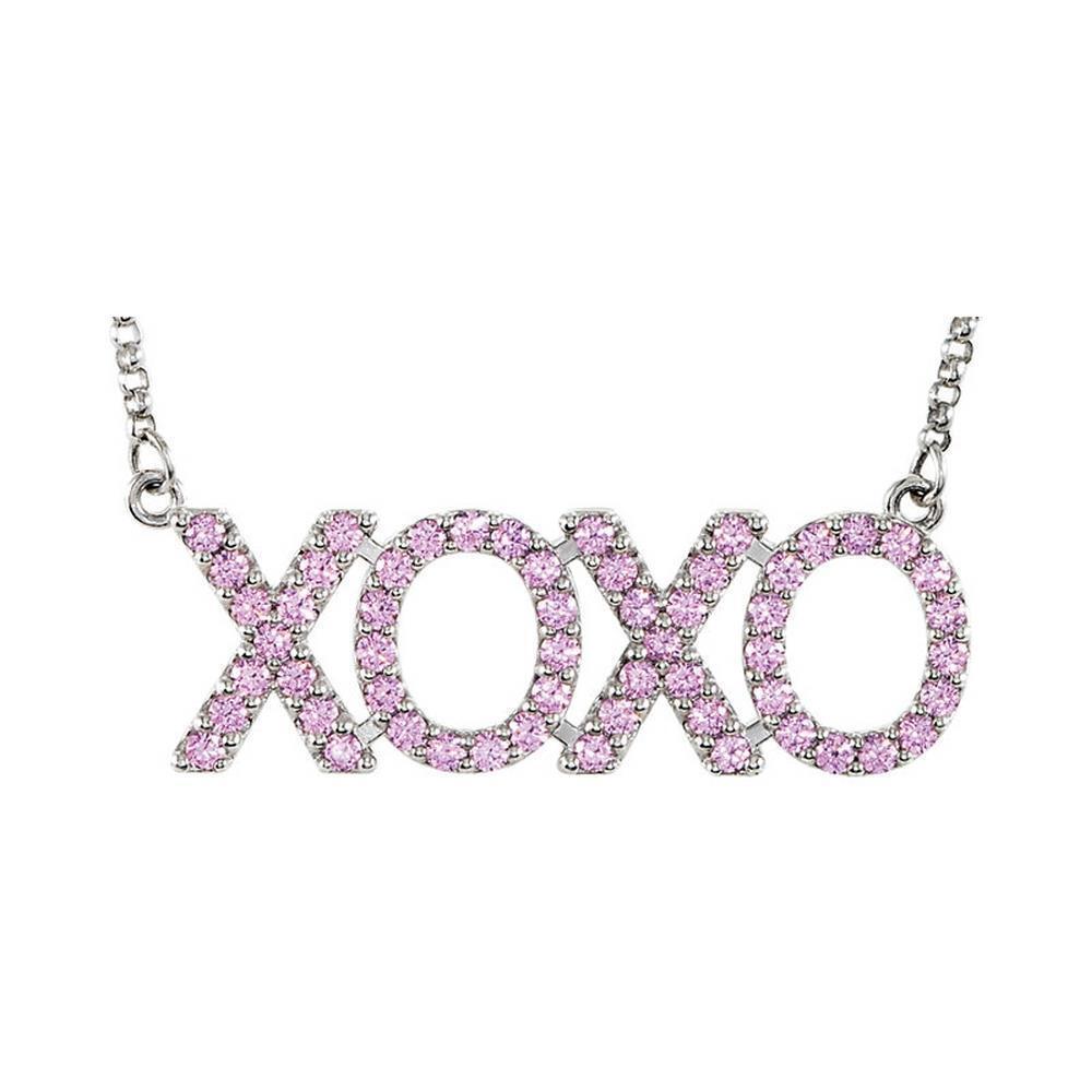 Sterling Silver XOXO Hugs and Kisses Pink Cubic Zirconia 18" Necklace