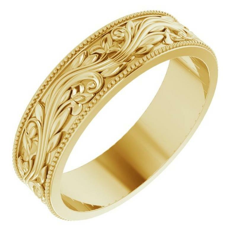 14k Yellow Gold 6 mm Sculptural Wedding Band with Milgrain Edge