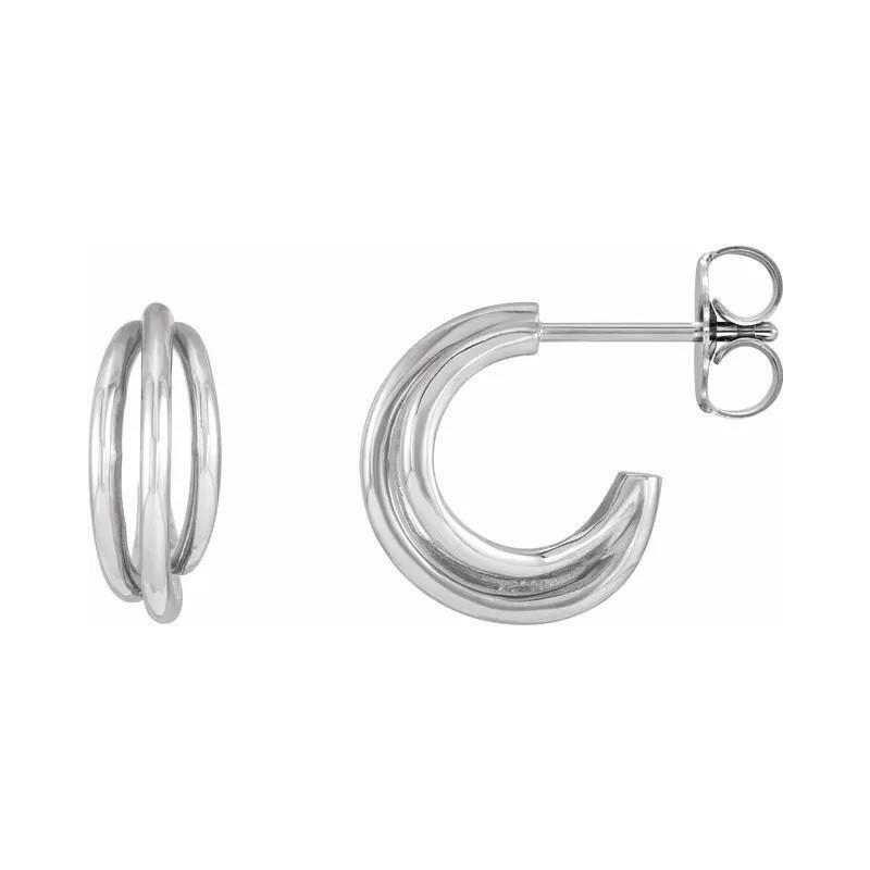 Rhodium-plated, 14k white gold multi-layer hoop earrings. Secures with push-backs.