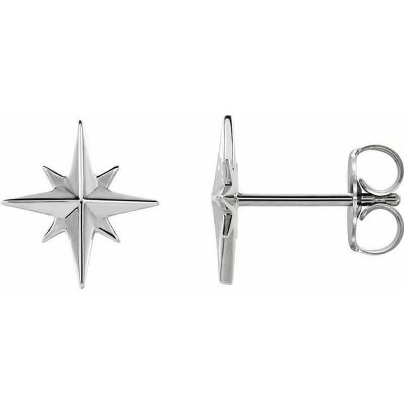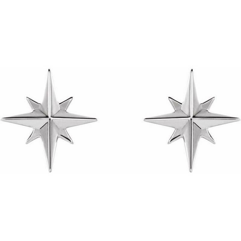 This pair of platinum gold stud earrings feature a star design.