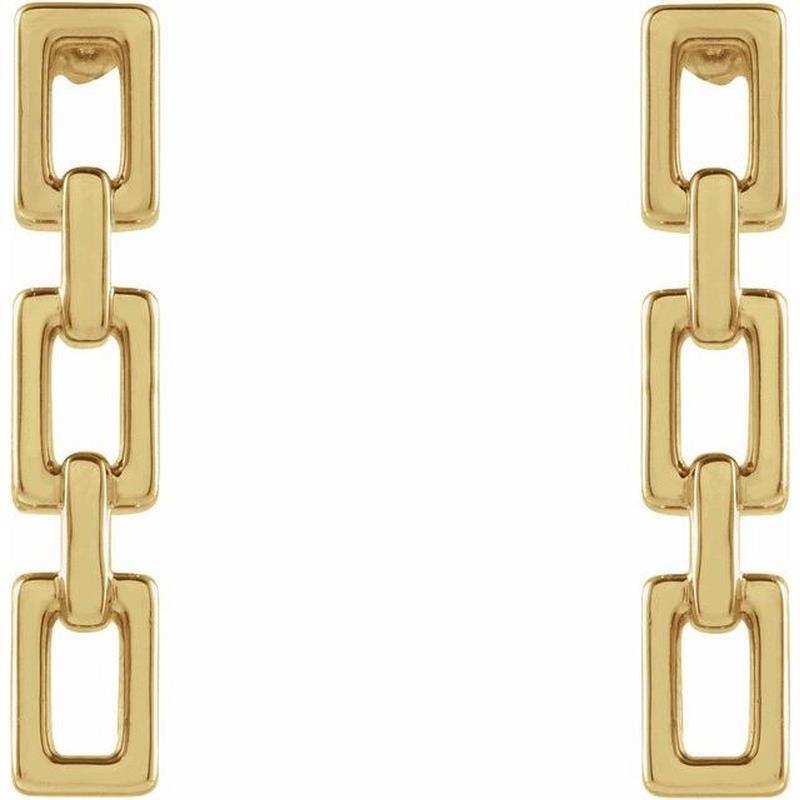 These beautiful pair of 14k yellow gold drop/dangle earrings feature a chain link design. The earrings are secured with friction pushbacks.