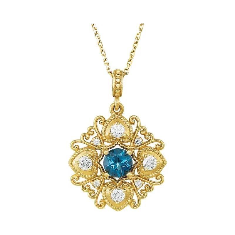 14k Yellow Gold London Blue Topaz and Diamond Necklace