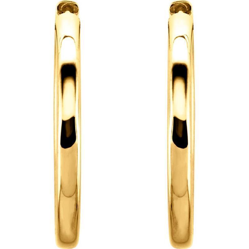 This pair of 14k yellow gold hinged hoop earrings comes in 4 sizes to suit your individual fashion needs. Secures with wire backs.