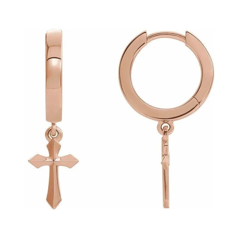 14k Rose Gold 20.1 mm Cross Dangle Hoop and 49 similar items