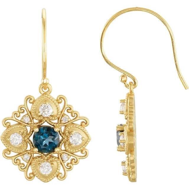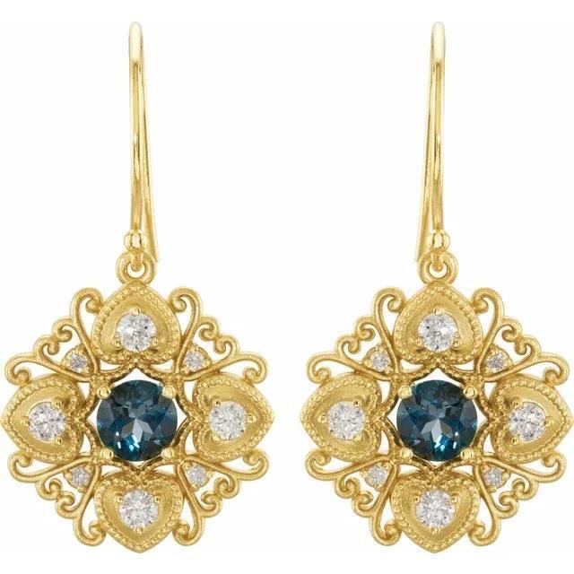 14k Yellow Gold London Blue Topaz and Diamond Earrings