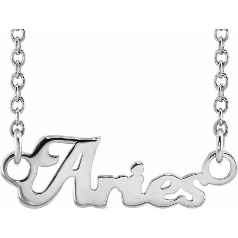 This is a platinum Aries Zodiac center pendant is suspended on an 18-inch cable. The chain secures with a spring-ring.