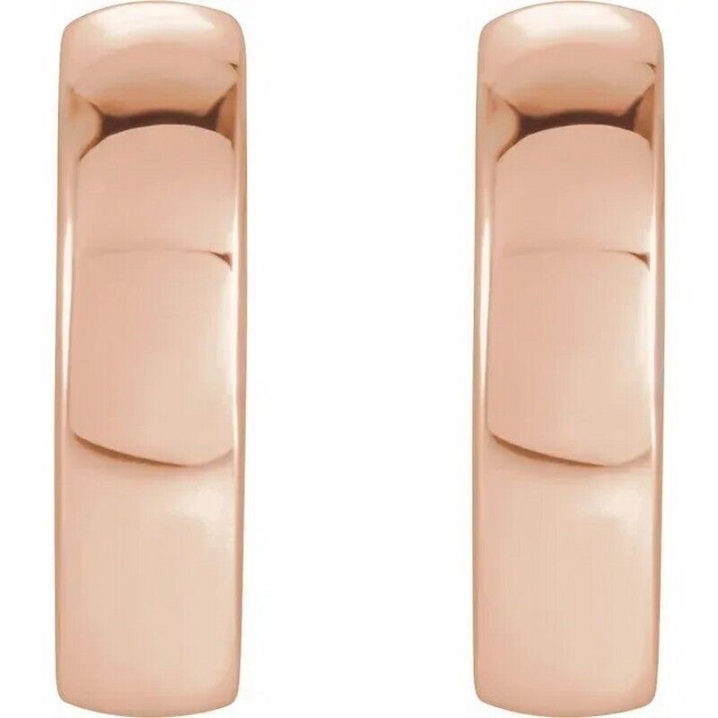 This pair of 14k rose gold huggie earrings measures 9.5 mm.