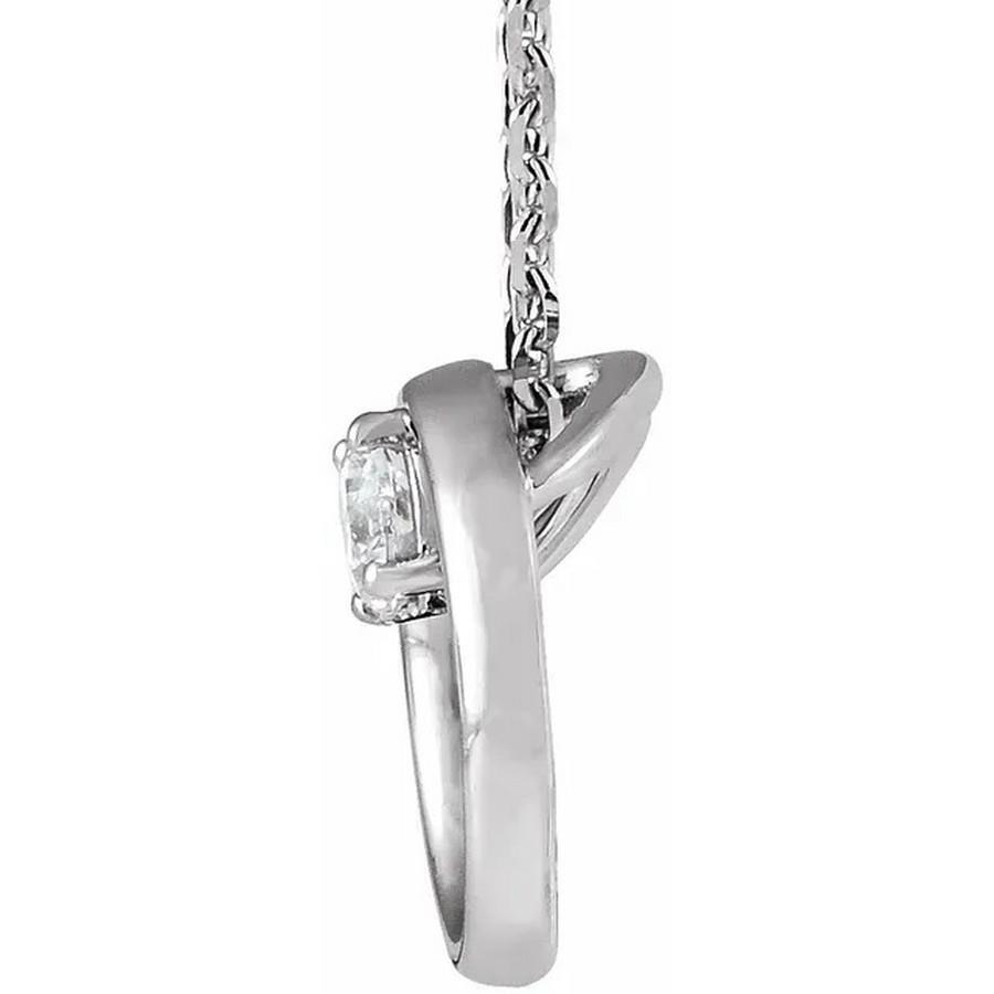 Crafted in rhodium-plated, 14k white gold this simply stunning necklace features a 3 mm dazzling diamond solitaire. The pendant charm hangs from an adjustable 16 to 18 inch diamond cut cable chain and secures with a spring ring.
