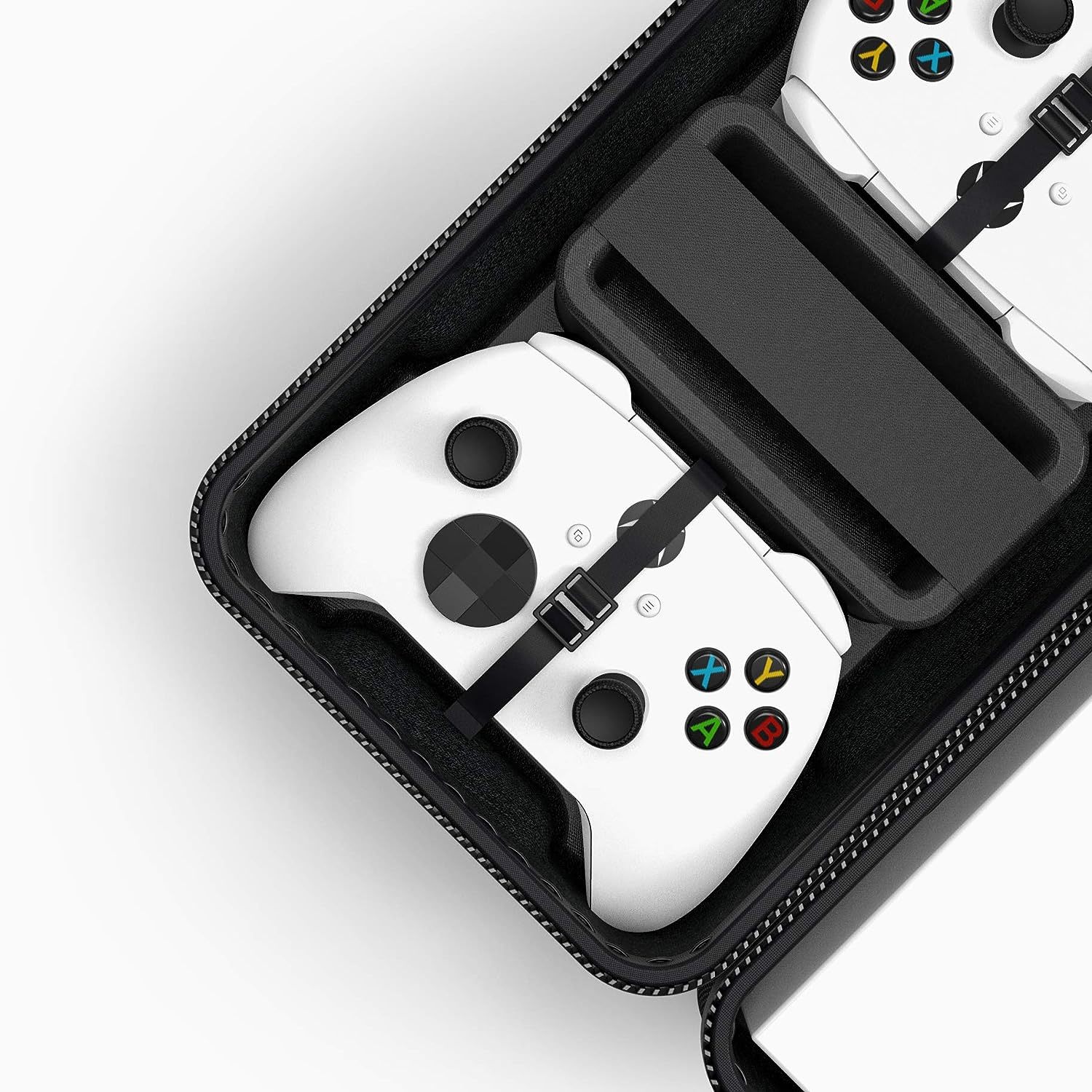 The corner of the case are convex shapes. With these pluses, the case enhances the shock absorption function. In addition, Simple interior design make the case well-organized, keeping your device and controllers in one place.