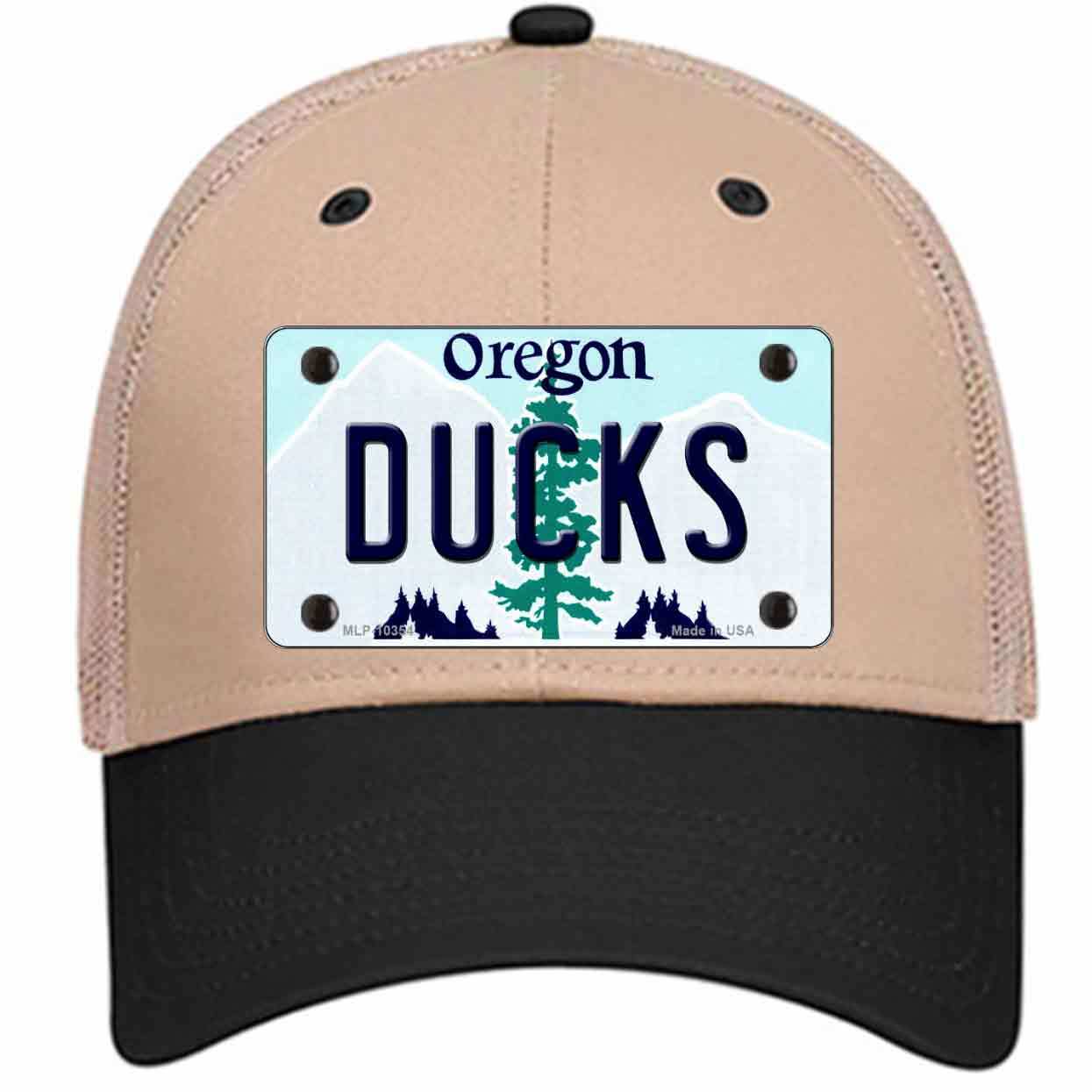 Ducks Oregon Novelty Khaki Mesh License Plate Hat