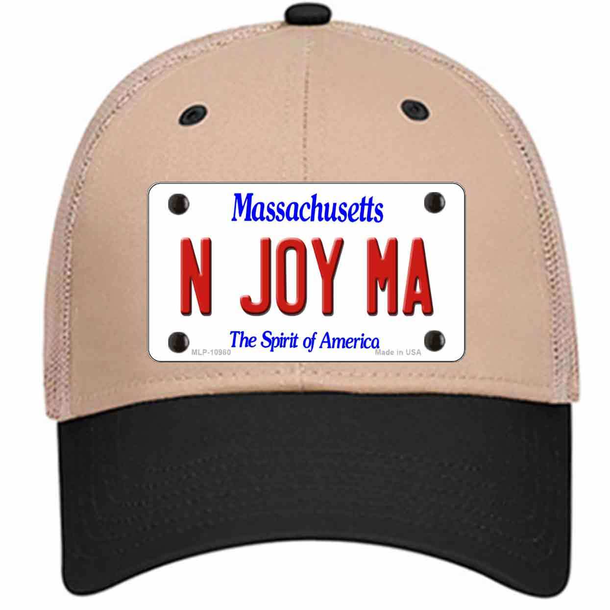 N Joy MA Massachusetts Novelty Khaki Mesh License Plate Hat