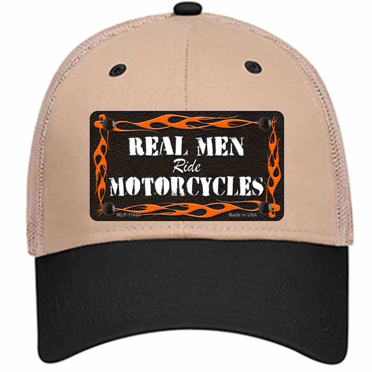 Real Men Ride Motorcycles Novelty Khaki Mesh License Plate Hat