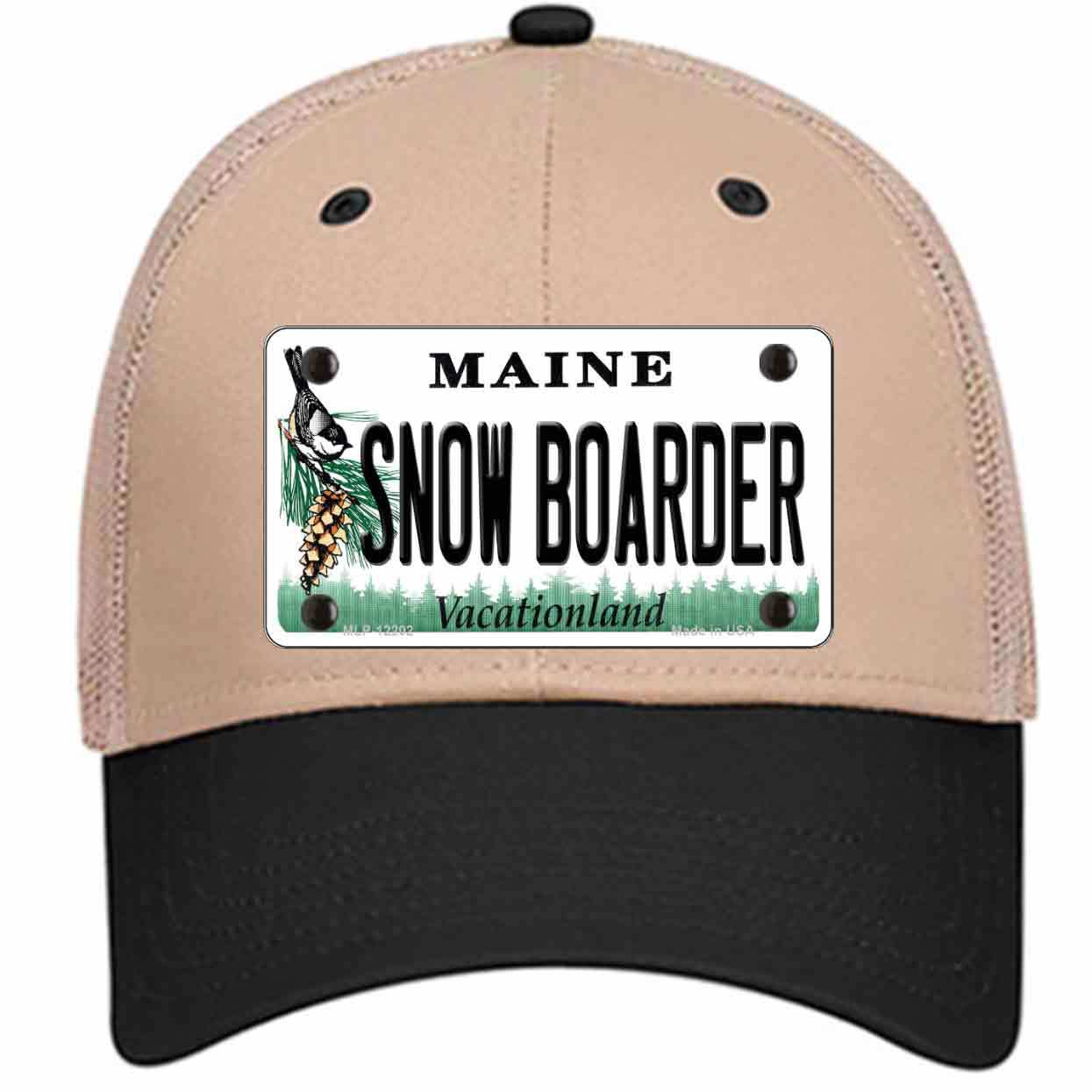 Snow Boarder Maine Novelty Khaki Mesh License Plate Hat