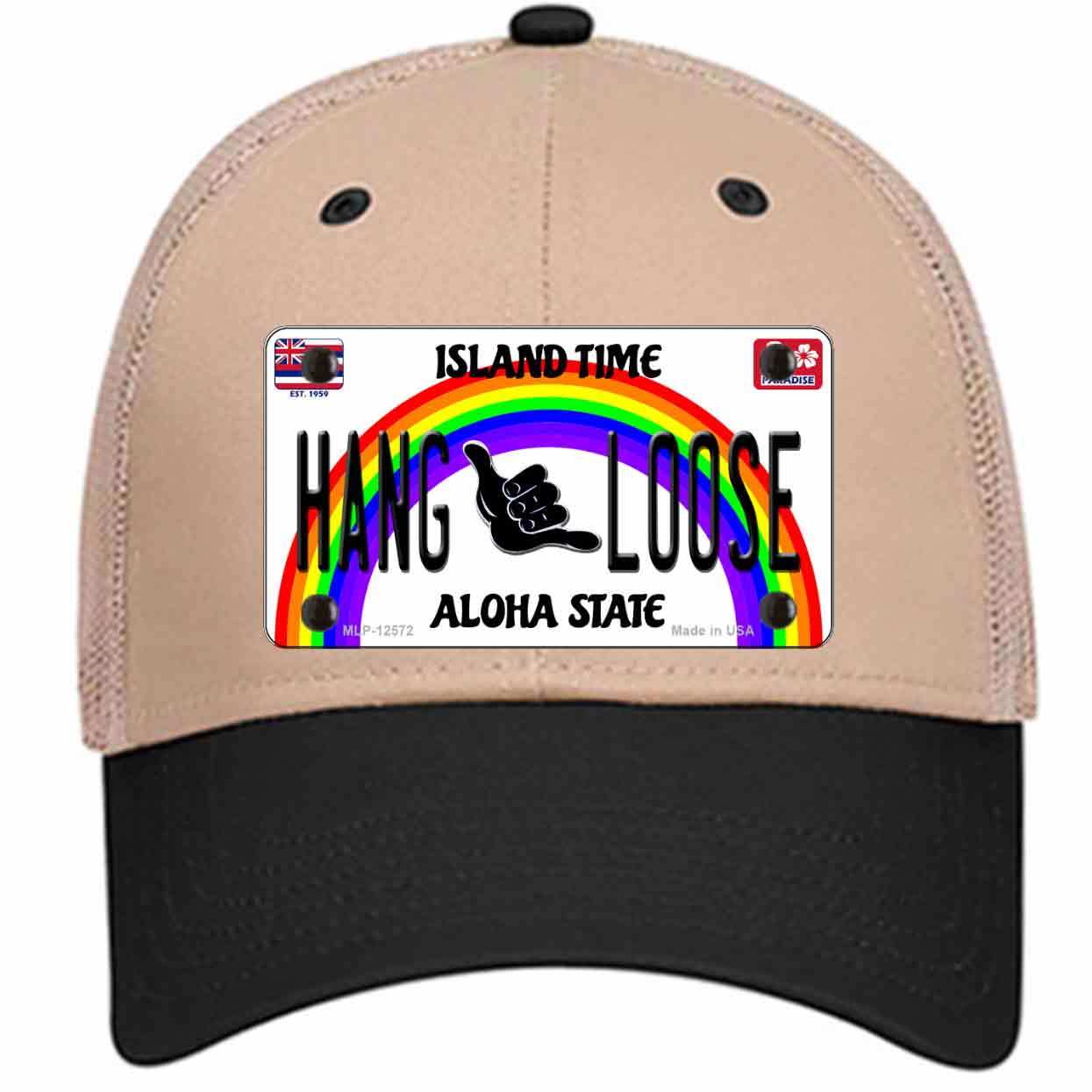 Hang Loose Hawaii Novelty Khaki Mesh License Plate Hat