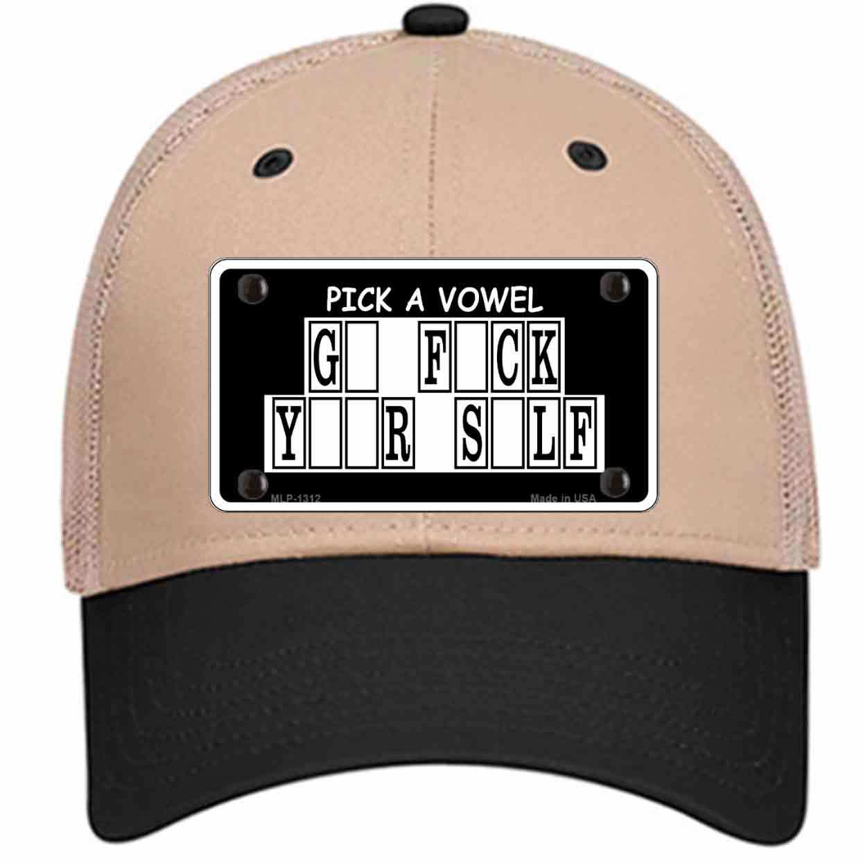 Pick A Vowel Novelty Khaki Mesh License Plate Hat