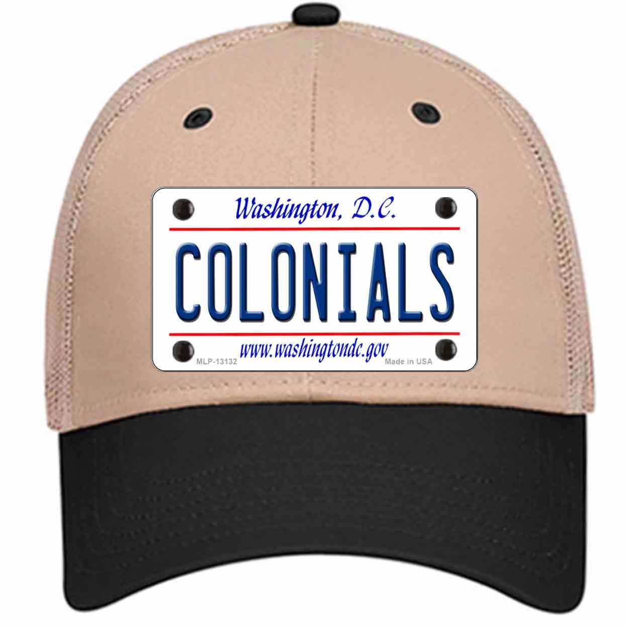 Colonials Novelty License Plate Hat. Show off your style with our mounted 4" x 2.2" metal patches on our 6 Panel SnapBack or Velcro Closer Hats. Choose between our different color and style caps. Our metal patches are made out of .025 grade aluminum and the designs are dye sublimated onto the metal to give a quality high gloss finish. Our metal patches are firmly attached using double cap rivets to give the patch an elegant tight fitting look!