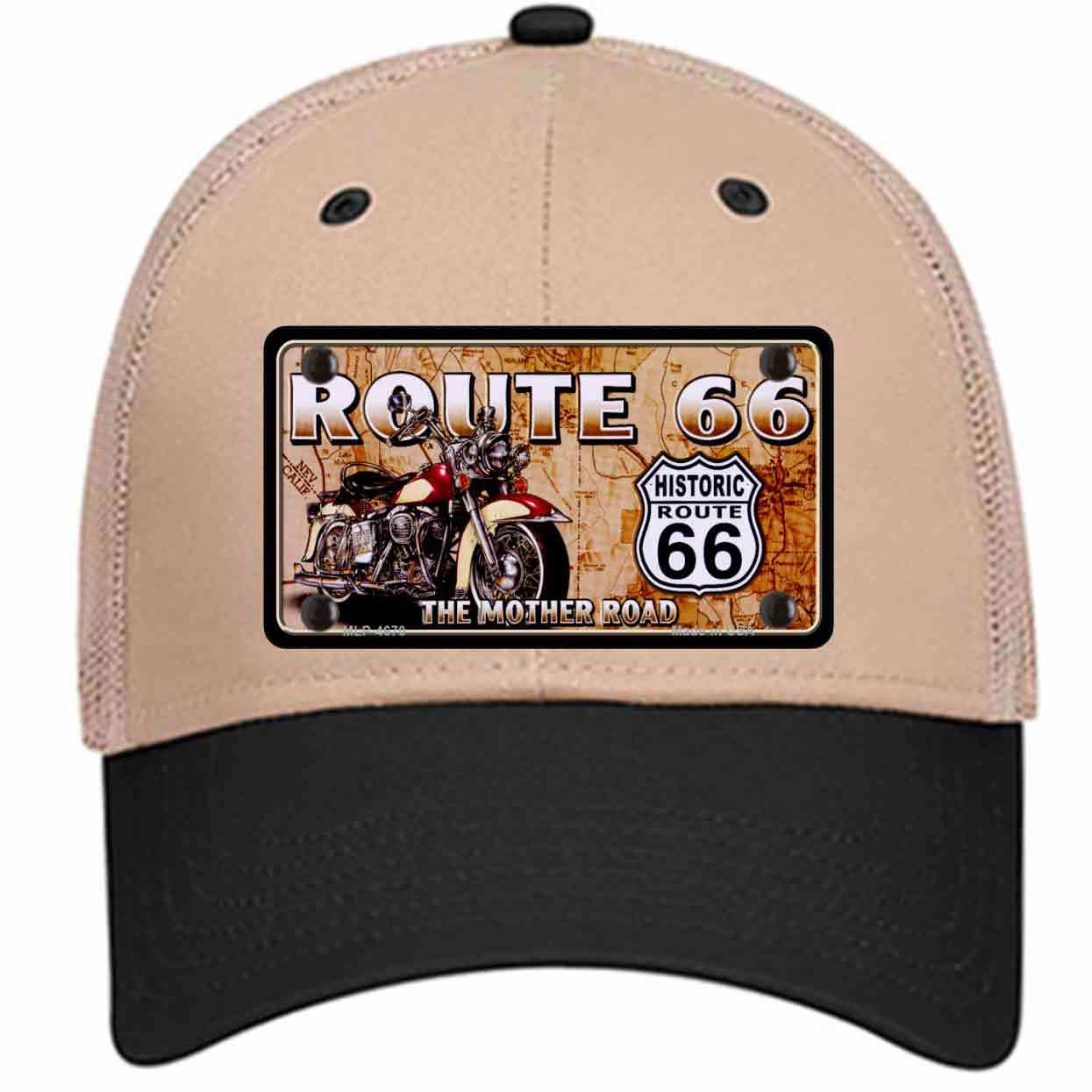 Route 66 Mother Road Motorcycle Novelty Khaki Mesh License Plate Hat