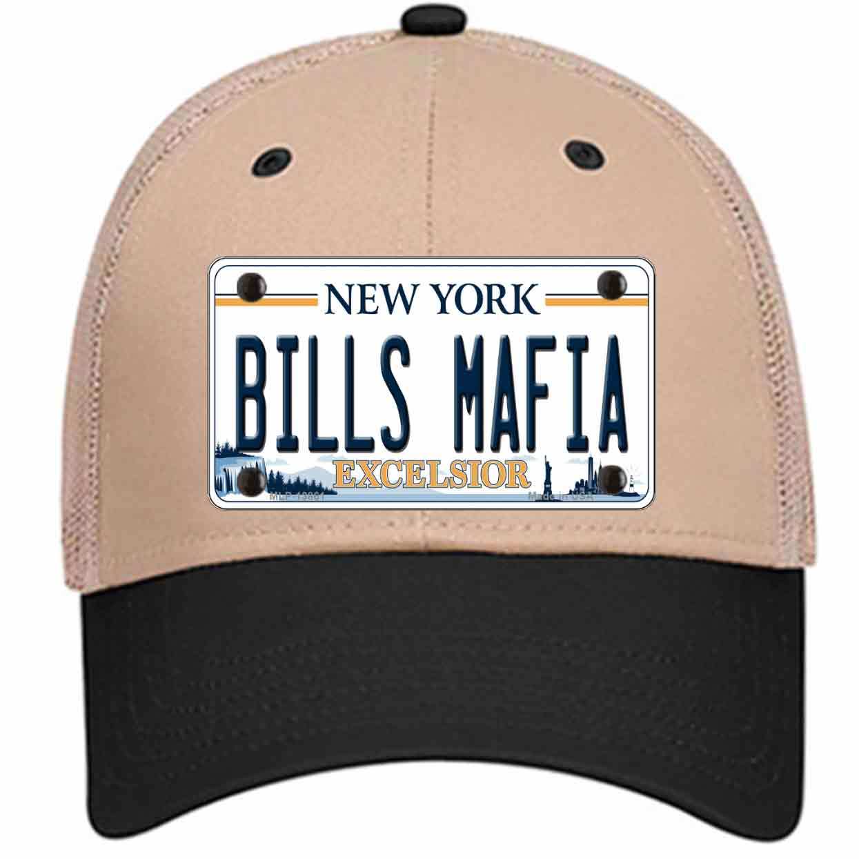 Bills Mafia NY Excelsior Novelty Khaki Mesh License Plate Hat Tag