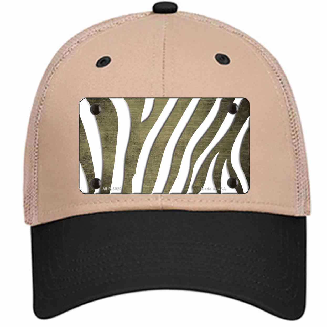 Gold White Zebra Oil Rubbed Novelty Khaki Mesh License Plate Hat