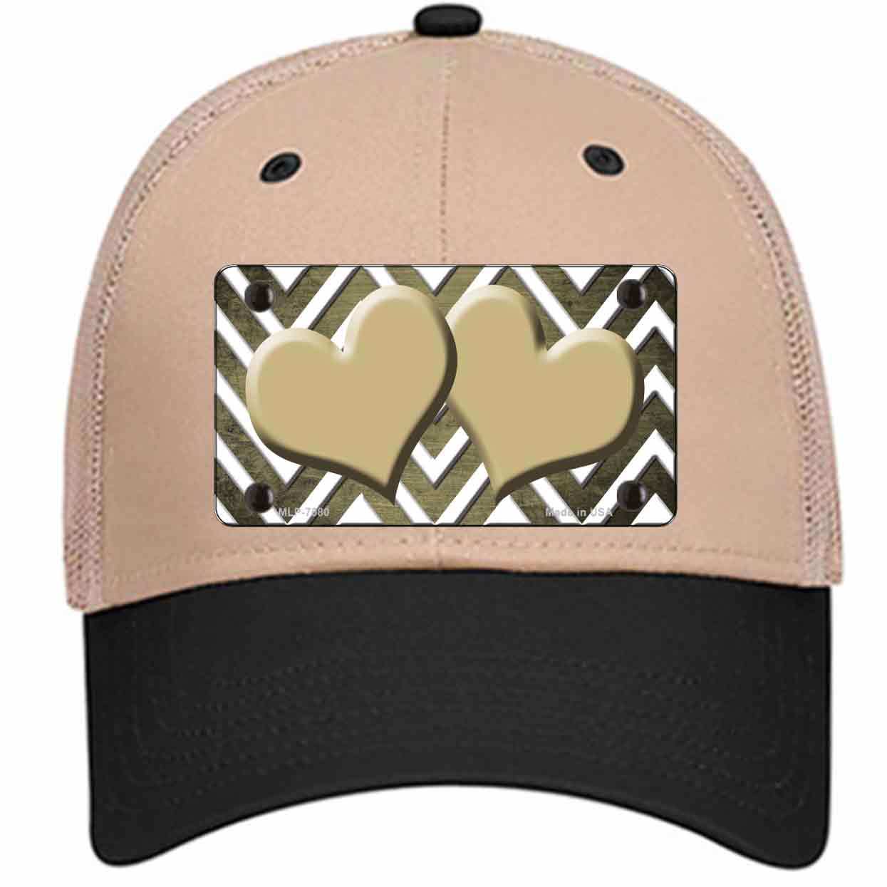 Gold White Hearts Chevron Oil Rubbed Novelty Khaki Mesh License Plate Hat