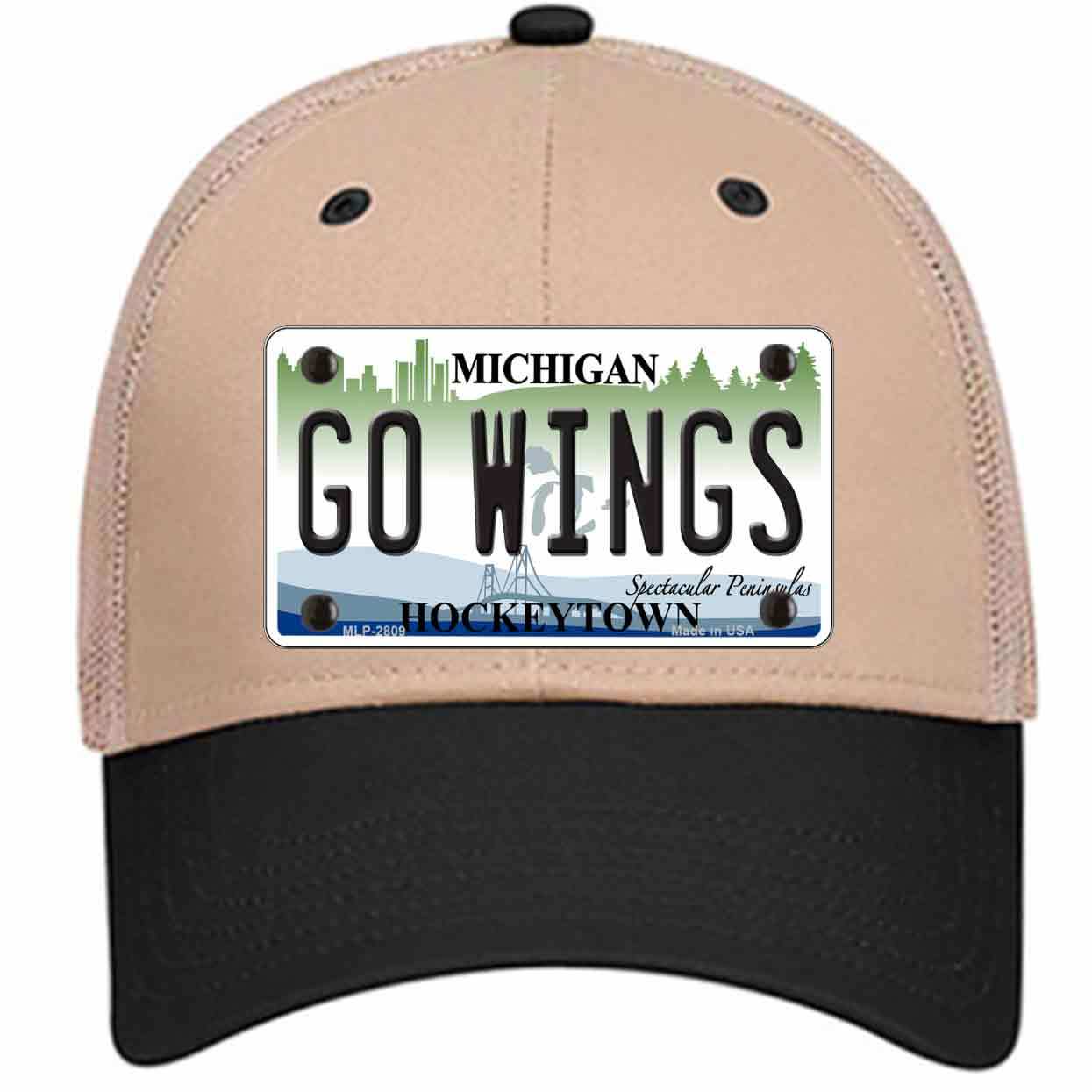 Go Wings Michigan State Novelty Khaki Mesh License Plate Hat