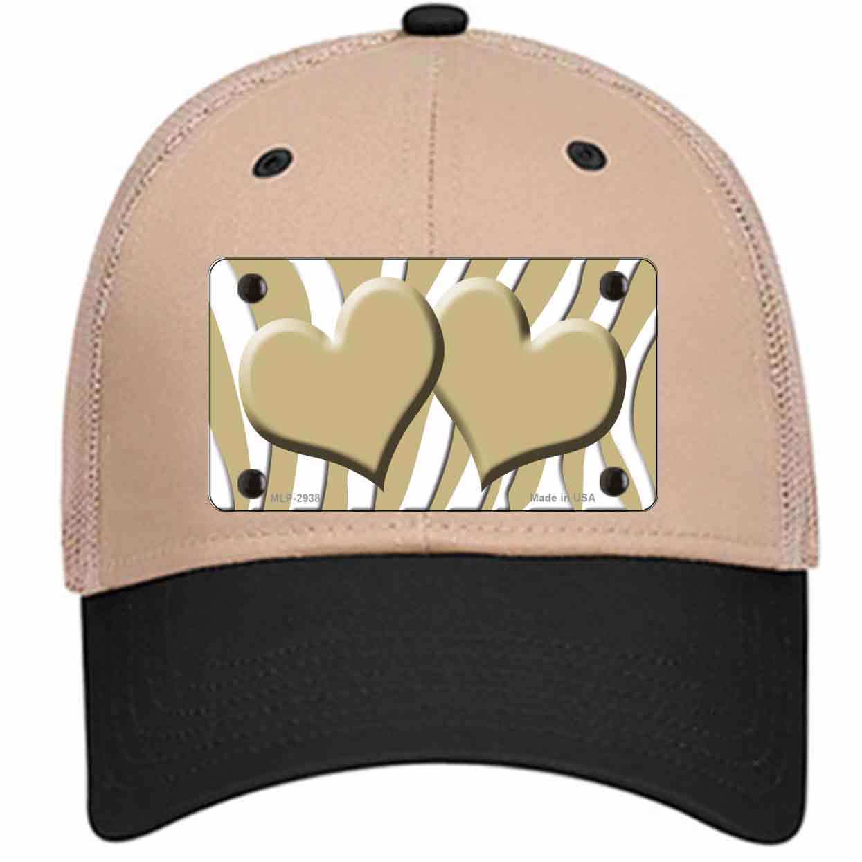 Gold White Zebra Gold Centered Hearts Novelty Khaki Mesh License Plate Hat