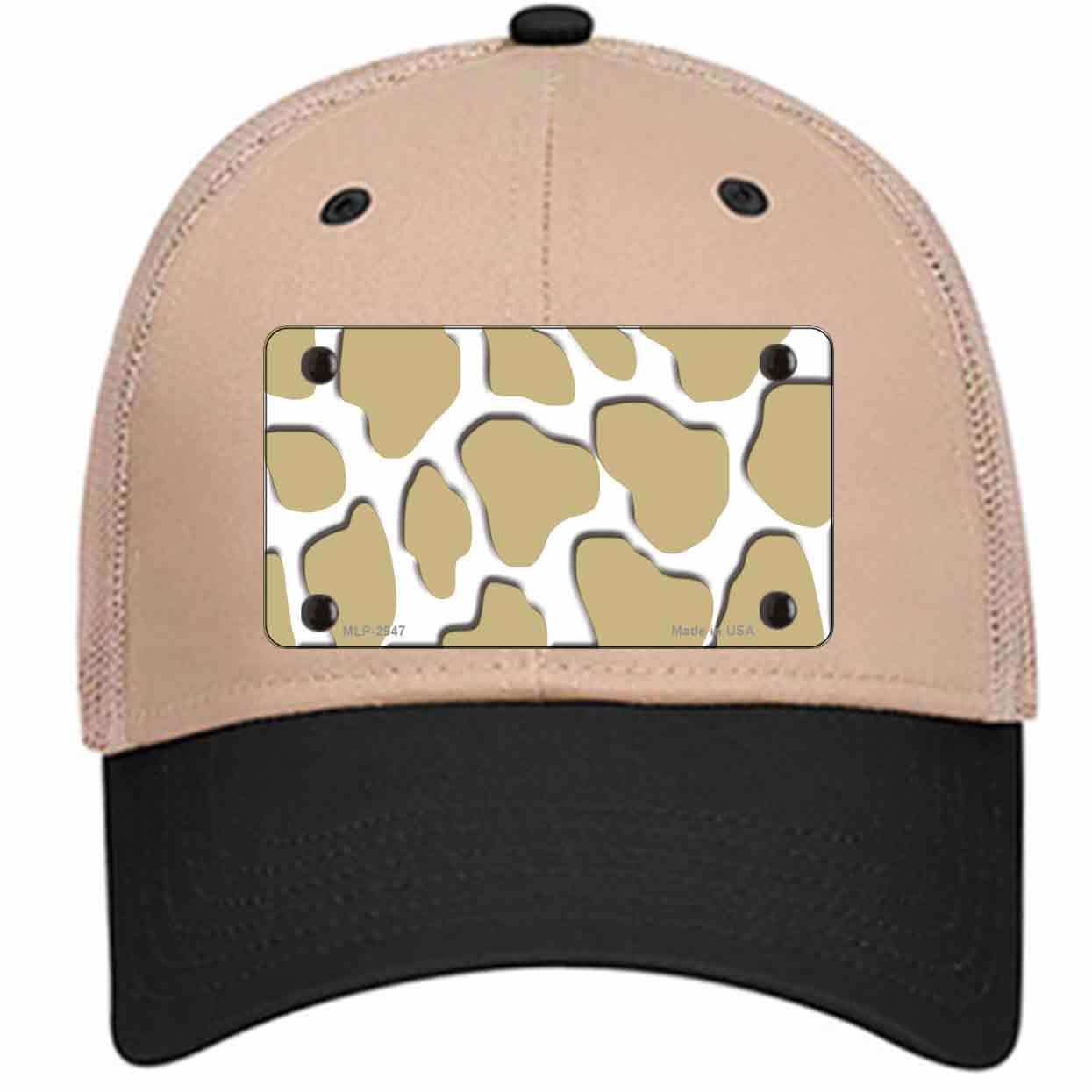 Gold White Giraffe Novelty Khaki Mesh License Plate Hat