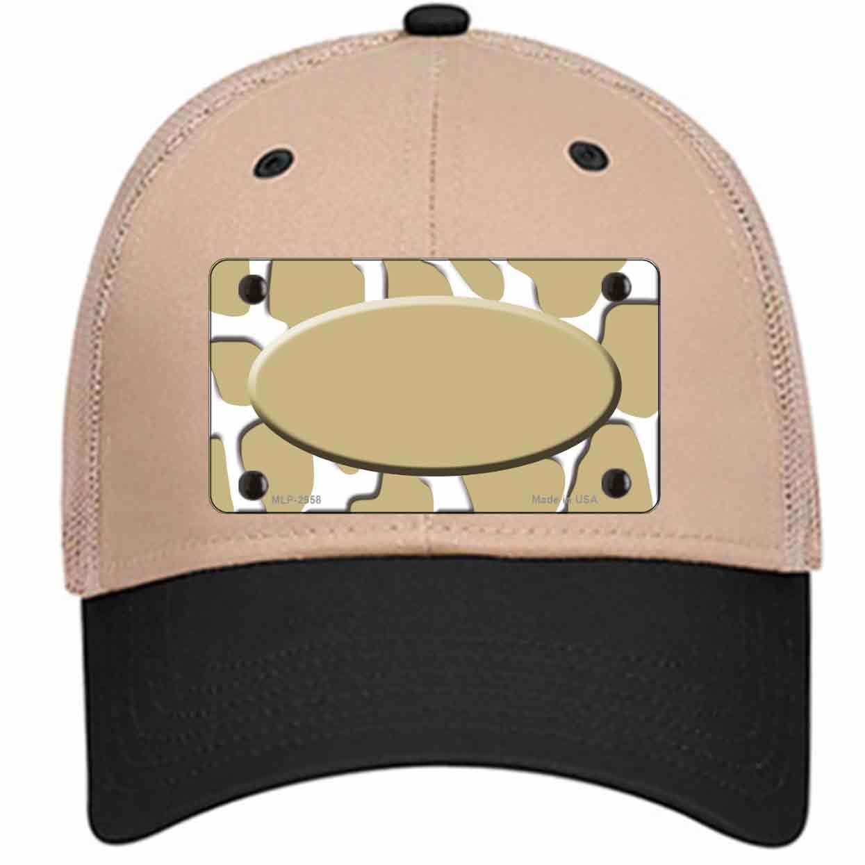 Gold White Giraffe Gold Center Oval Novelty Khaki Mesh License Plate Hat
