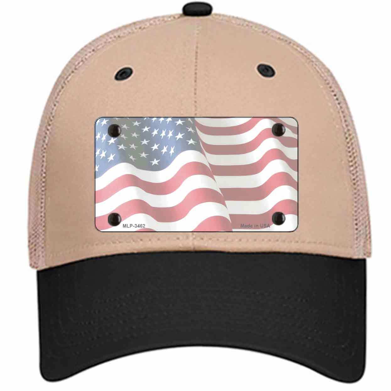 Faded Old Glory Novelty License Plate Hat. Show off your style with our mounted 4" x 2.2" metal patches on our 6 Panel SnapBack or Velcro Closer Hats. Choose between our different color and style caps. Our metal patches are made out of .025 grade aluminum and the designs are dye sublimated onto the metal to give a quality high gloss finish. Our metal patches are firmly attached using double cap rivets to give the patch an elegant tight fitting look!