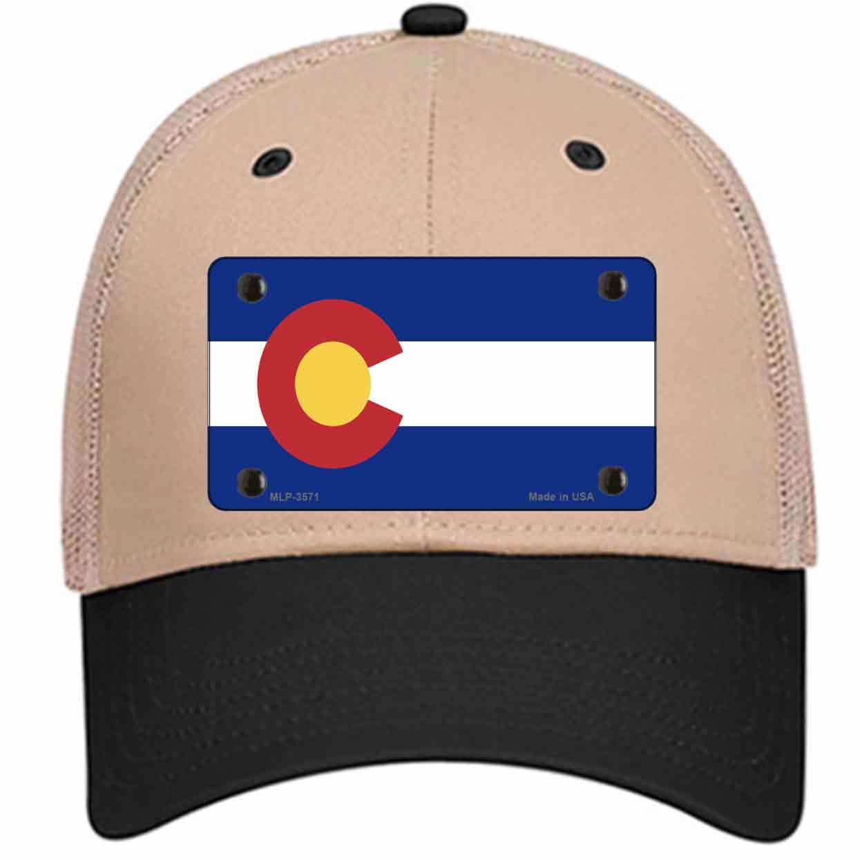 Colorado State Flag Novelty Khaki Mesh License Plate Hat