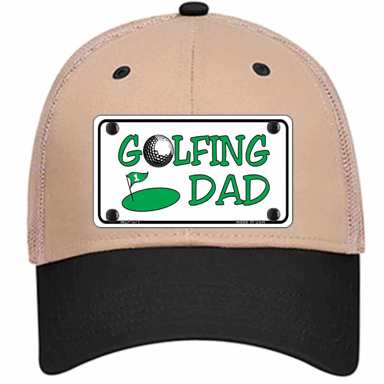 Golfing Dad Novelty Khaki Mesh License Plate Hat