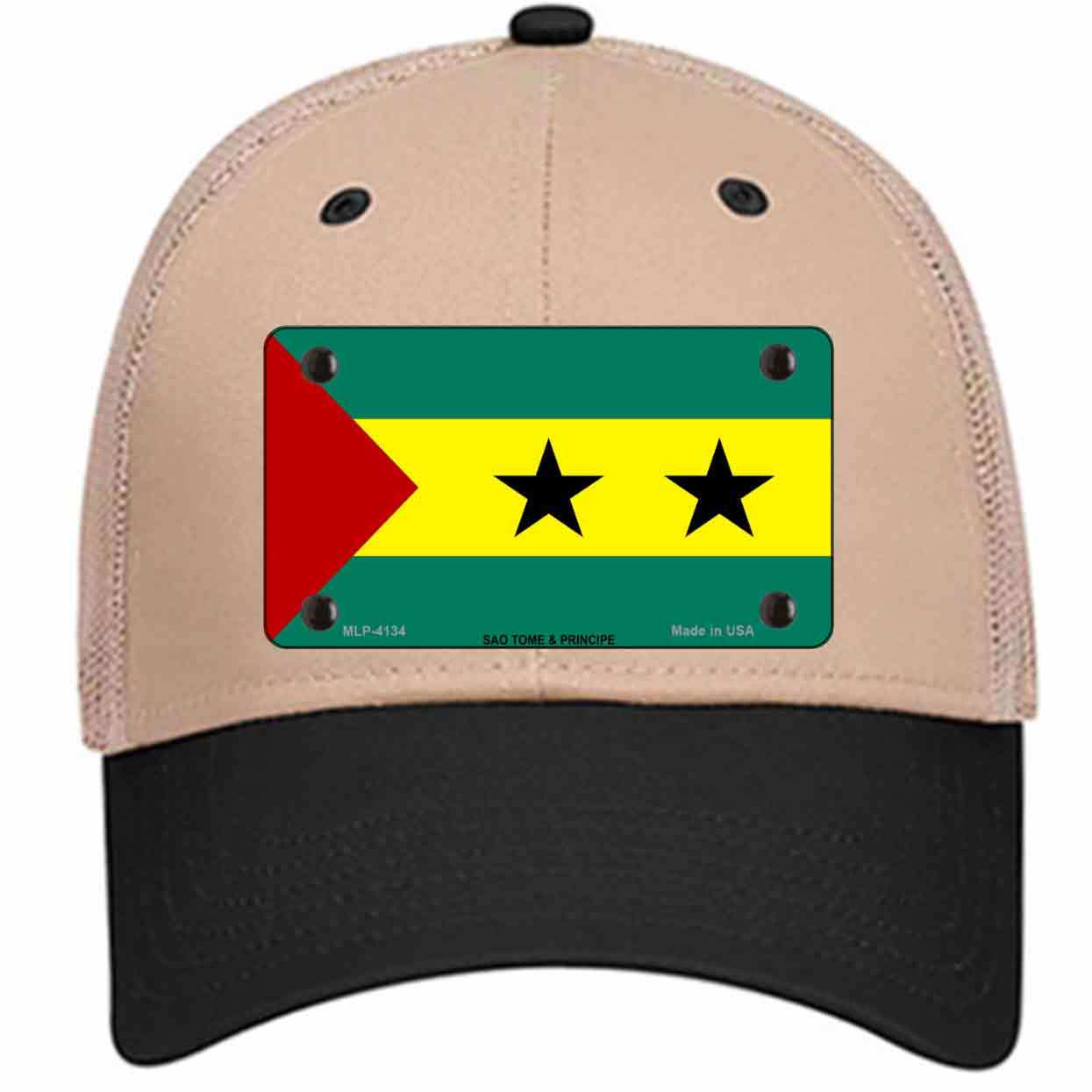 Sao Tome And Principe Flag Novelty Khaki Mesh License Plate Hat