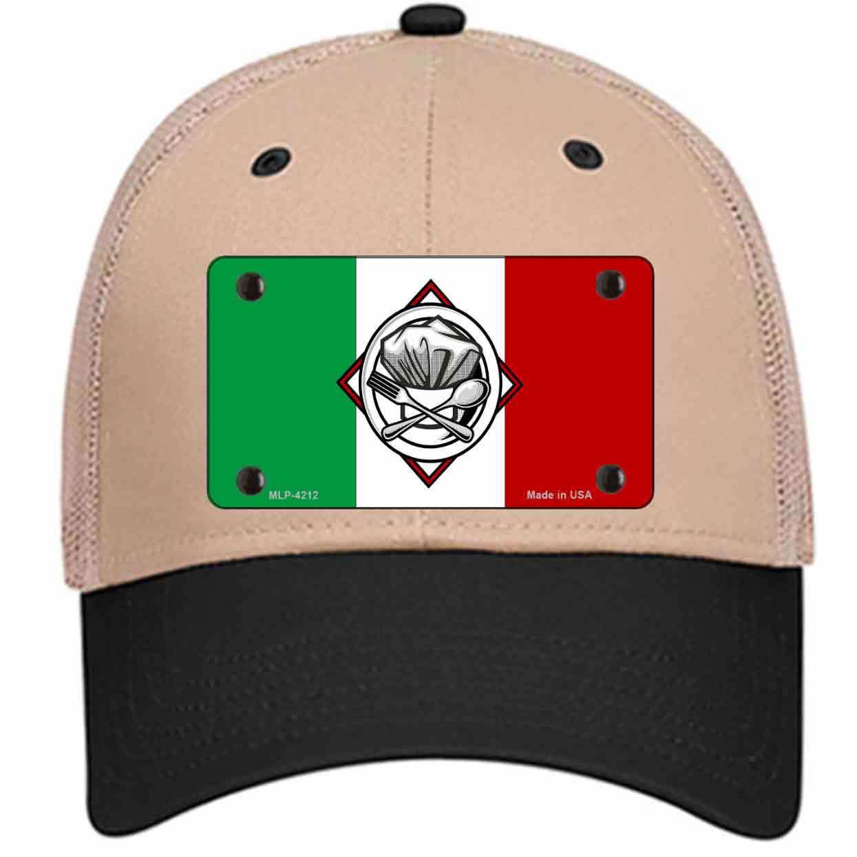 Italy Flag Culinary Logo Novelty Khaki Mesh License Plate Hat