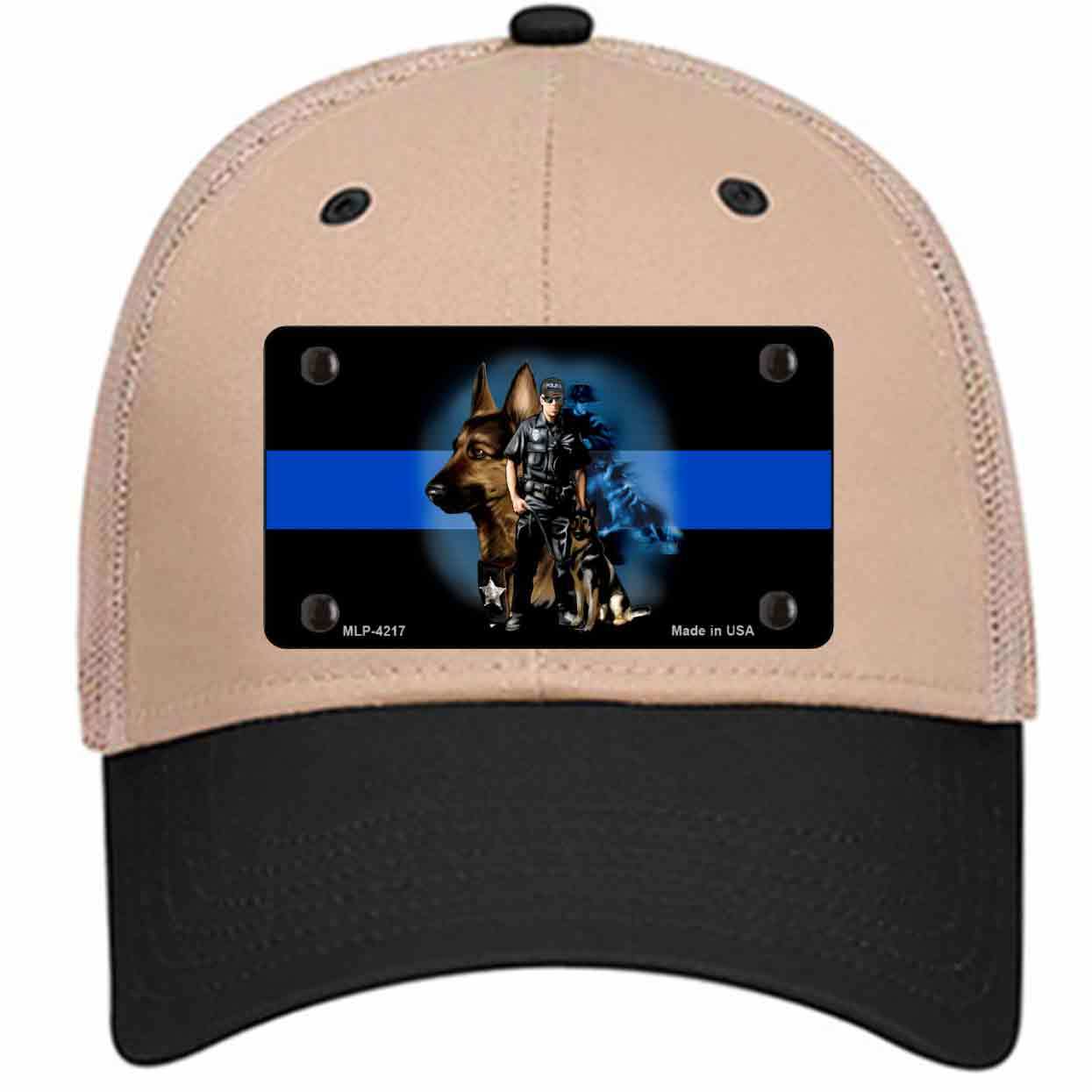 Thin Blue Line Police K-9 Novelty Khaki Mesh License Plate Hat