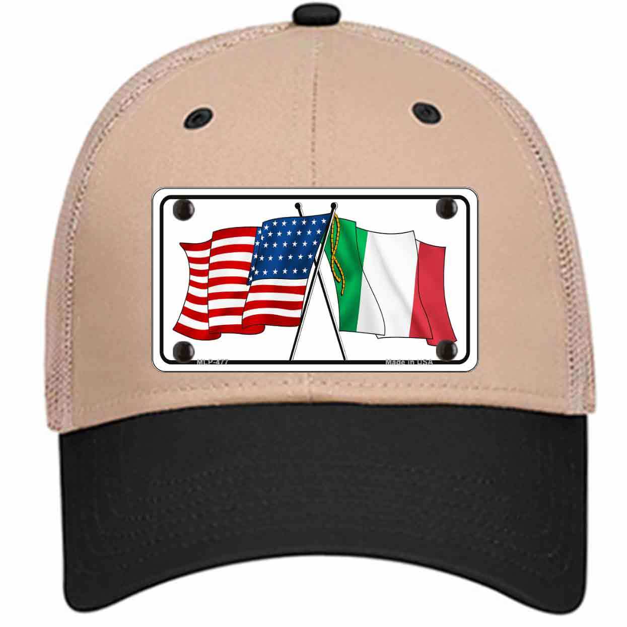 United States Italy Crossed Flags Novelty Khaki Mesh License Plate Hat