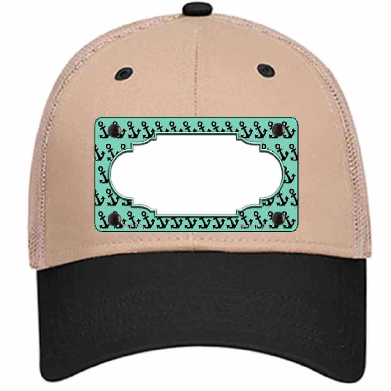 Mint Black Anchor Scallop Center Novelty Khaki Mesh License Plate Hat