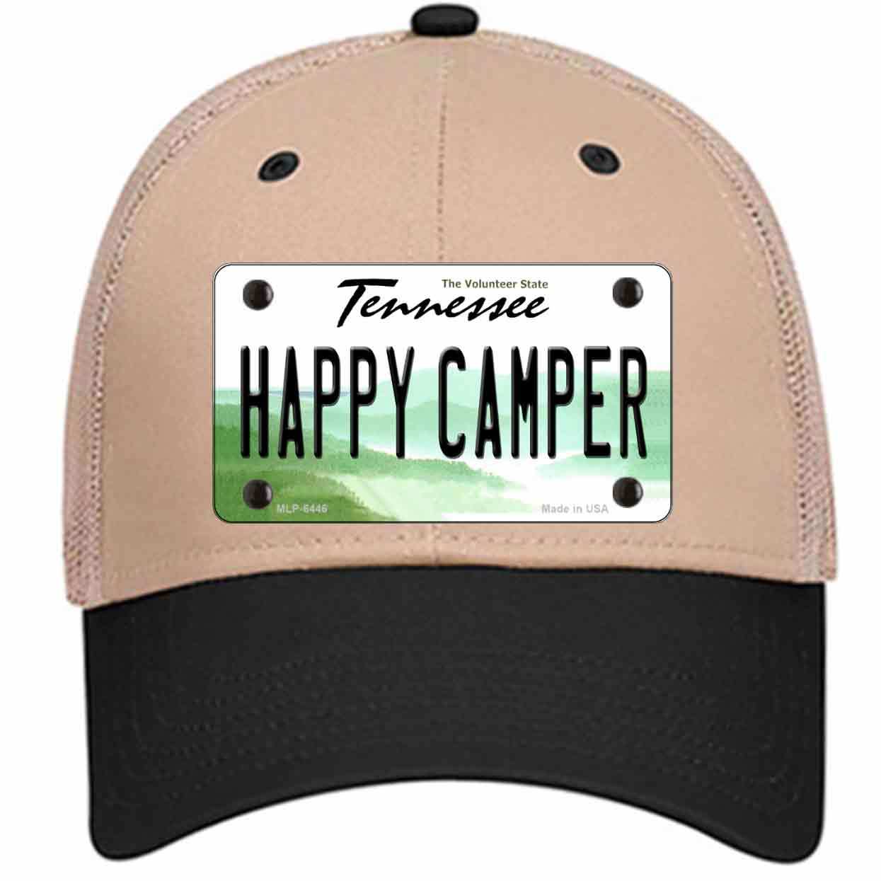 Happy Camper Tennessee Novelty Khaki Mesh License Plate Hat