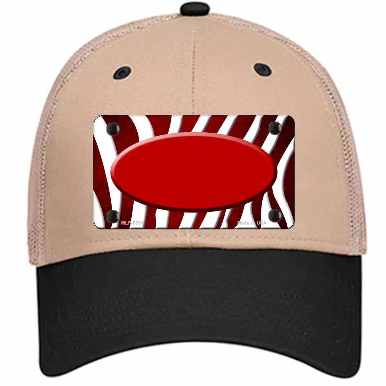 Red White Zebra Oval Oil Rubbed Novelty Khaki Mesh License Plate Hat